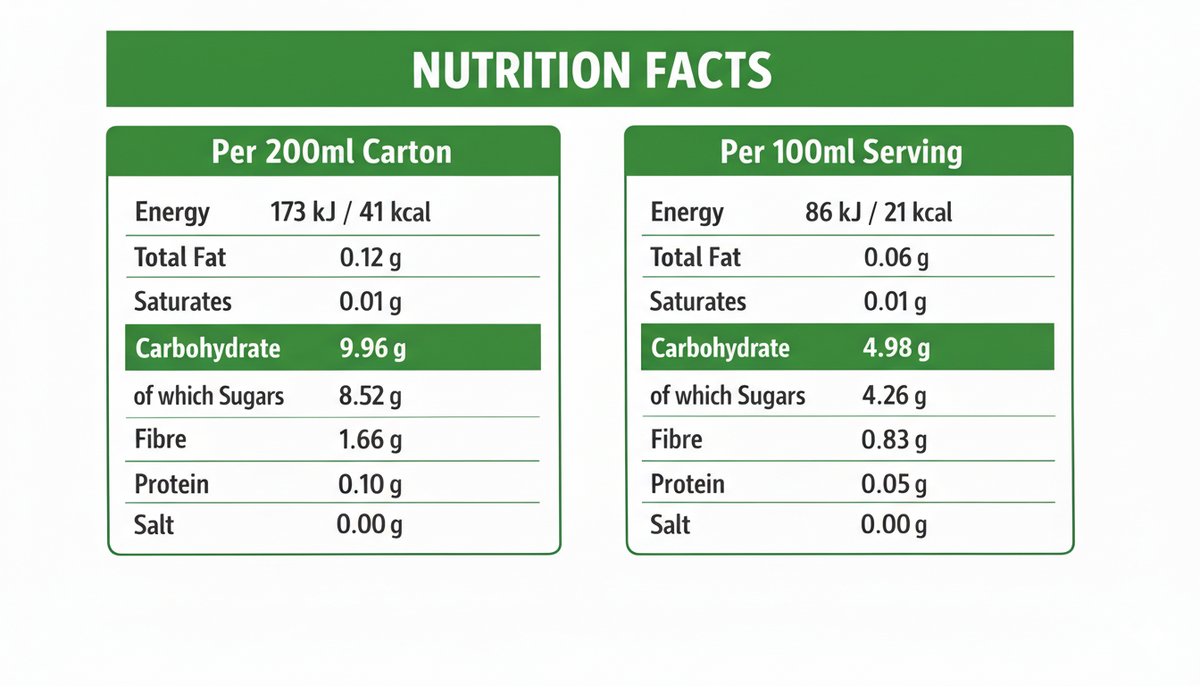 Enriched with Vitamins A, C, D3, Calcium, Iron, and Potassium from natural fruits and vegetables